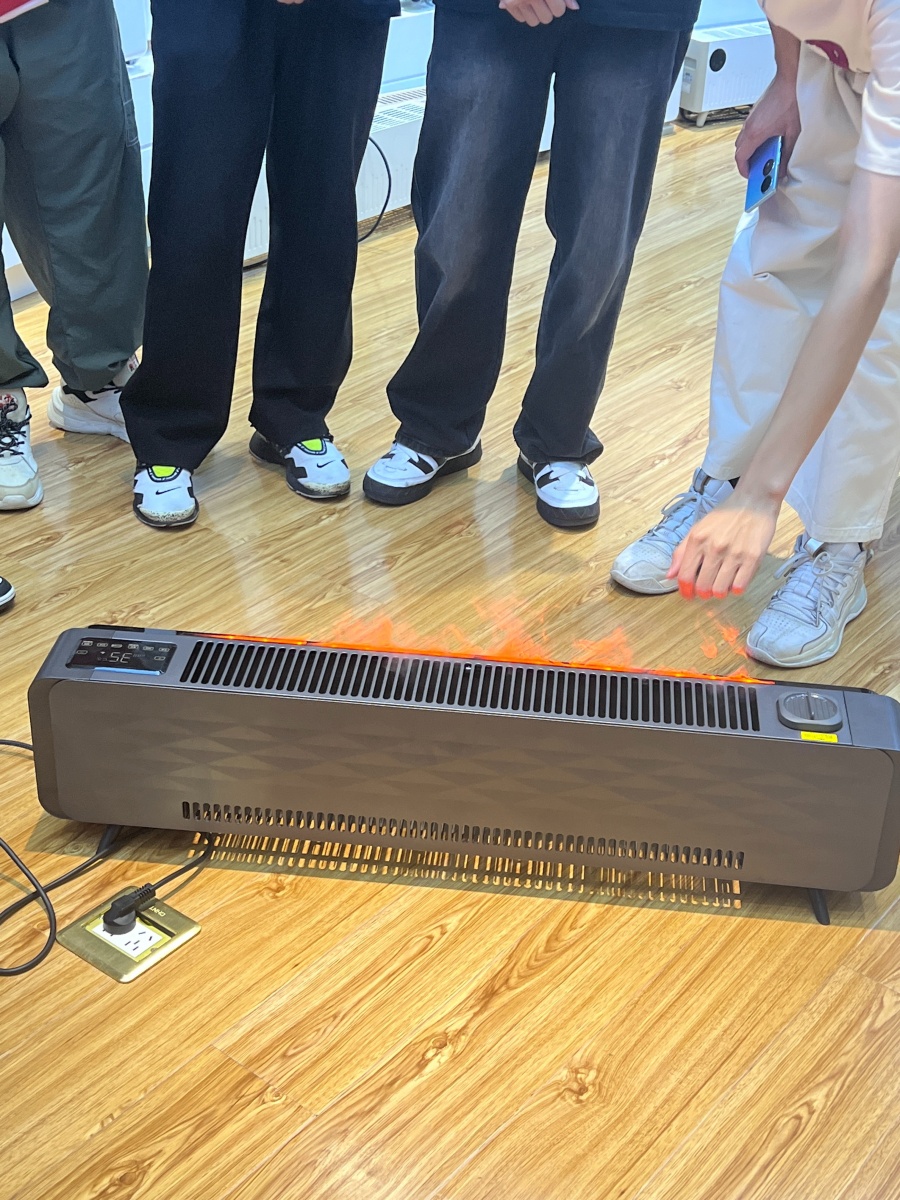 期間,同學們對炭火火焰踢腳線產生了濃厚興趣,這也是先鋒去年冬季的主推新品,即開即熱。