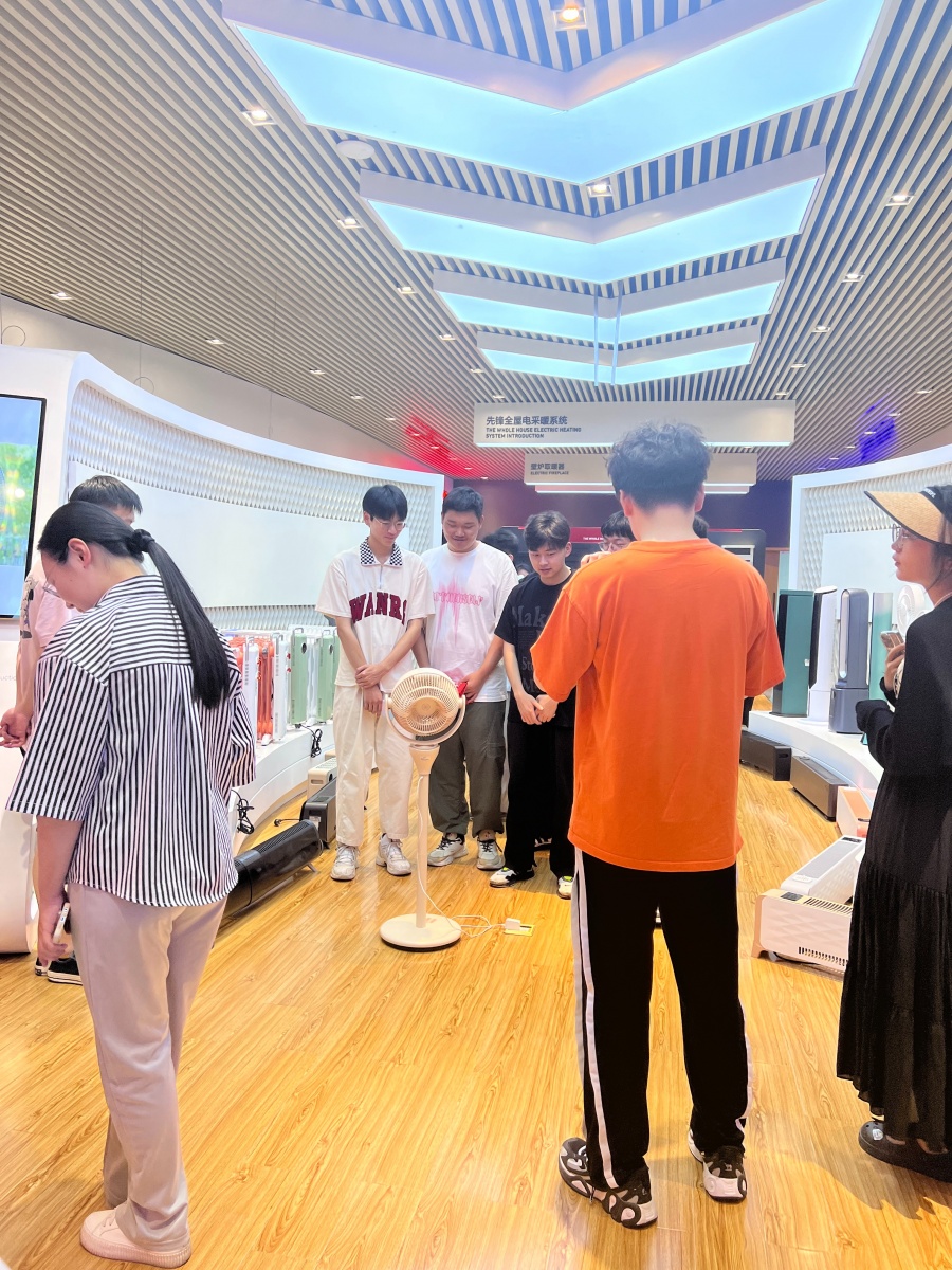 這是今年新品離線智能語音循環扇,在聽完循環扇和普通風扇的區別后,同學們也親自體驗,與“小先小先”進行了親密交互。